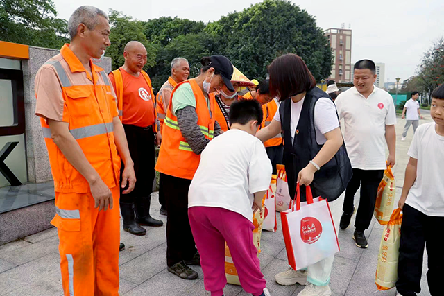活動現場,由公司總部黨支部、松山湖北部片區黨委代表和長沙商會黨支部代表組成的慰問團一行向常年奮戰在一線的環衛工人致以節日的祝賀和崇高的敬意,并與一線環衛工人進行親切交談,詳細了解他們的工作和生活情況,對他們長期以來為城市“干凈、整潔”面貌作出的貢獻表示衷心感謝。近年來,東莞市城市面貌日新月異,人居環境日益改善,城市品質不斷提升,這一切都凝結著廣大環衛工人的心血和汗水,是他們用實際行動詮釋著“寧愿一人臟,換來萬家潔”的奉獻精神,用勤勞詮釋責任擔當,在平凡的崗位上做出了不平凡的業績。